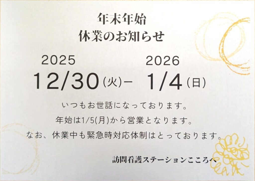2025年は12月29日で通常訪問は終了致します。